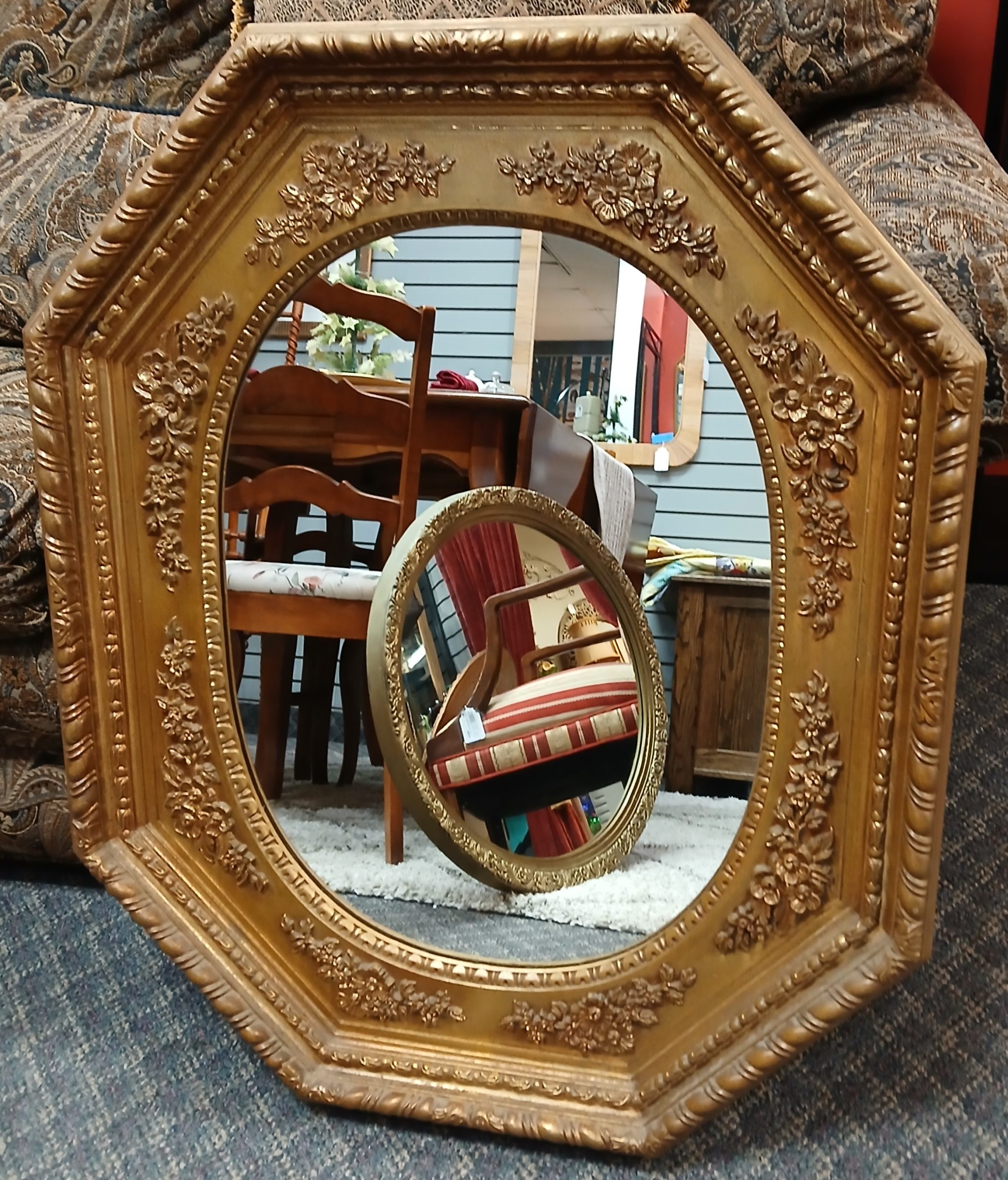 1960’s Vintage Mid Century Modern Octagon Gilt Mirror 1960’s Vintage Mid Century Modern Octagon Gilt Mirror 26 x 33 Price $159.00 Product Location Location Jackson Store Other related products: Vintage Carved Wood White Washed Mirror$149.99 Location: Ann Arbor Store 4′ x 4′ Bronzed Beveled Mirror$210.00 Location: Ann Arbor Store Vintage European Black-Gold Two Way Gilded Beveled Mirror $475.00 Location: Jackson Store French Verre Eglomise Mirror C. 1950’s$400.00 Location: Ann Arbor Store Durham Furniture Traditional Mahogany Beveled Mirror$245.00 Location: Ann Arbor Store << back to the catalog