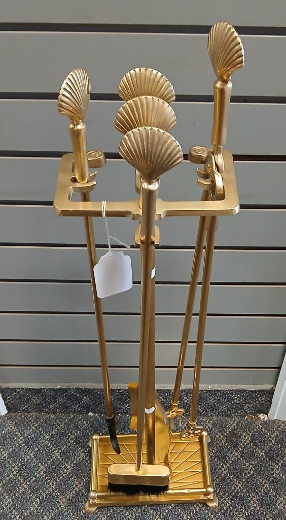 1980’s Vintage Solid Brass-Gold Finish Seashell Fireplace Tool Set 1980’s Vintage Solid Brass-Gold Finish Seashell Fireplace Tool Set Like New~ Price $247.00 Additional Pictures Product Location Location Jackson Store Other related products: Beveled Prism Mirror $225.00 Location: Jackson Store Vintage Round Ornate Gilt Mirror $99.00 Location: Jackson Store Vintage Carved Wood White Washed Mirror$85.00 Location: Ann Arbor Store Vintage Sold Oak Mirror $165.00 Location: Jackson Store Decorative Round Beveled Glass Mirror $89.00 Location: Jackson Store << back to the catalog