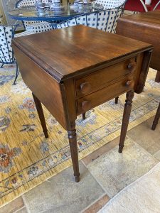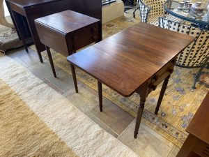 2 ~ Early American Pembroke Drop Leaf Tables ~ Sold Separately! Price $374.99 Size: 20in x 18-34in x 29in (LxWxH) Additional Pictures $374.99 Each! Product Location Location Ann Arbor Store Other related products: Arhaus Lounge Chair in Magnolia Fog Upholstery$499.99 Location: Ann Arbor Store 2 ~ Vintage Mahogany Pembroke Drop Leaf Side Table ~ Sold Separately!$449.99 Location: Ann Arbor Store Englanders Gray Leather Loveseat$199.99 Location: Ann Arbor Store North Shore Ornate Side Tables Sold Separate Location: Jackson Store Vintage Mastercraft Style Brass & Glass Console Table$600.00 Location: Ann Arbor Store << back to the catalog
