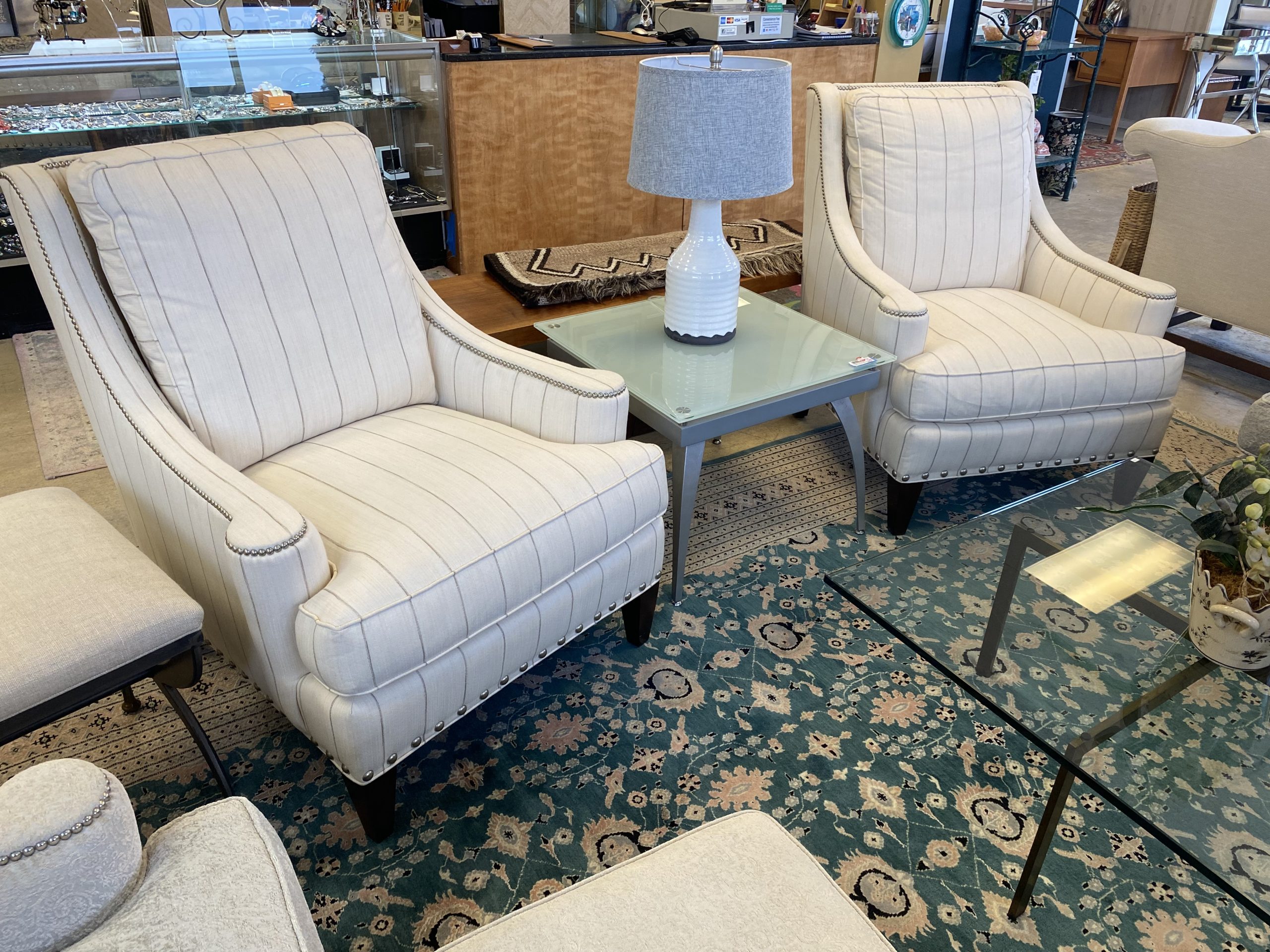 2 ~ Sherrill Furniture Custom Birmingham Accent Chairs ~ Sold Separately! Price $1,199.99 Size: 40.5in x 33.5in x 39.25in (LxWxH) Additional Pictures $1,199.99 each! Product Location Location Ann Arbor Store Other related products: Modern Black Lacquered Wood With Glass Top Sideboard-Console $562.00 Location: Jackson Store Arhaus Faux Leather Adjustable Swivel Office Chair $143.00 Location: Jackson Store Floating Frosted Glass Contemporary Side Table$240.00 Location: Ann Arbor Store Vintage Hooker Furniture Seven Seas Series Illuminated Curio $225.00 Location: Jackson Store Room & Board Parsons 30″ Iron & Glass Side Table$249.99 Location: Jackson Store << back to the catalog