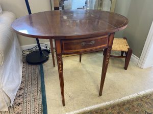 2 ~ Vintage Mahogany Pembroke Drop Leaf Side Table ~ Sold Separately! Price $405.00 Size: 30in x 18-37.5in x 28.25in (LxWxH) Additional Pictures $405 Each! Product Location Location Ann Arbor Store Other related products: Mid Century Modern Thomasville Furniture Etagere Display Cabinet $525.00 Location: Jackson Store Oxblood Bonded Leather Push Back Recliner $279.00 Location: Jackson Store Stickley Charleston Forge Oak & Iron Side Table$350.00 Location: Ann Arbor Store 1970’s James Mont Style Oxblood Horseshoe Chair$125.00 Location: Ann Arbor Store Noir Furniture Gimso Wood Coffee Table$600.00 Location: Ann Arbor Store << back to the catalog