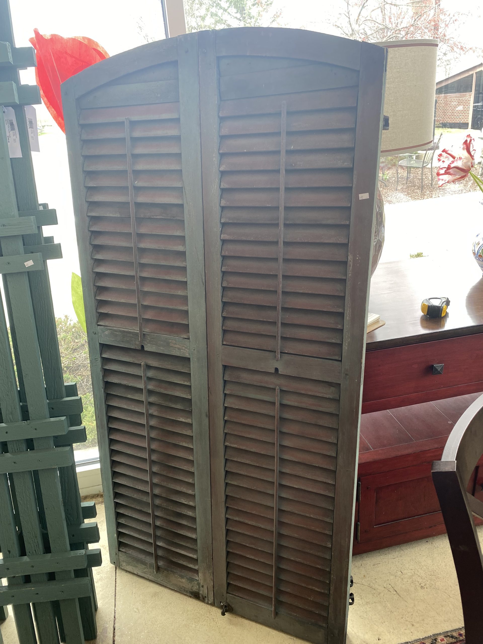 2 ~ Vintage Shutters ~ Sold Separately! Price $249.99 Size: 32.5in x 64in (LxH) Additional Pictures $249.99 Each! Product Location Location Ann Arbor Store Other related products: 3 ~ Custom Made Garden Trellis ~ Sold Separately!$249.99 Location: Ann Arbor Store Hatteras Large Sunbrella Quilted Hammock + 15′ Stand$360.00 Location: Ann Arbor Store Newer Safavieh Nason 4 Pc. Patio Set $765.00 Location: Jackson Store 2-IKEA BLACK SKOALBODA CHAIRS Sold Separate Location: Jackson Store 46″H Glazed Outdoor Temple Jar$299.99 Location: Ann Arbor Store << back to the catalog