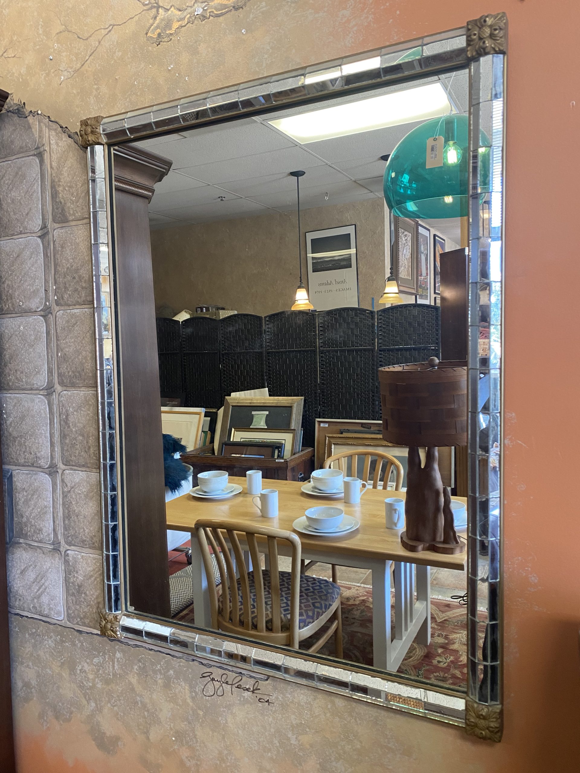 33″ x 25″ Vintage Beveled Edged Mirror Price $120.00 Additional Pictures Product Location Location Ann Arbor Store Other related products: Vintage Carved Wood White Washed Mirror$149.99 Location: Ann Arbor Store Vintage Sold Oak Mirror $157.00 Location: Jackson Store 4′ x 4′ Bronzed Beveled Mirror$299.99 Location: Ann Arbor Store 42.5 x 38.5 Vintage LeBarge Beveled Mirror$145.00 Location: Ann Arbor Store French Verre Eglomise Mirror C. 1950’s$400.00 Location: Ann Arbor Store << back to the catalog