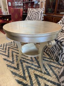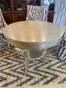 34″ Round Gilded Accent Table Price $300.00 Size: 31in x 31in x 34in (LxWxH) Additional Pictures Product Location Location Ann Arbor Store Other related products: 2-IKEA BLACK SKOALBODA CHAIRS Sold Separate Location: Jackson Store Vintage Italy Hand Tooled Wrought Iron With Hand Painted Tile Accent Table $180.00 Location: Jackson Store NEW ~ Ashley Furniture Alphons Pull Tab Reclining Loveseat$510.00 Location: Jackson MI Hickory Chair French Empire Lamp Table$100.00 Location: Ann Arbor Store Custom Harden Furniture Paisley Loveseat $475.00 Location: Jackson Store << back to the catalog