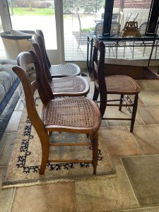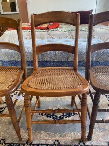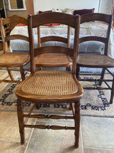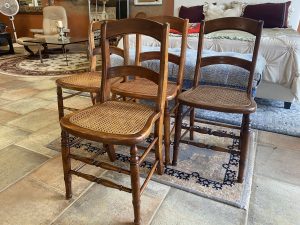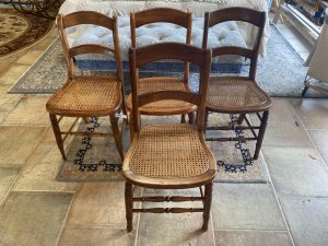 4 ~ Antique American Caned Dining Chairs ~ Sold Separately! Price $124.99 Size: 16in x 16in x 33in (LxWxH) Additional Pictures $124.99 Each! Product Location Location Ann Arbor Store Other related products: Antique Mahogany Inlaid Drop Leaf Gate Leg Dining Table$399.99 Location: Ann Arbor Store Vintage Thomasville Furn. Dining Room Set $880.00 Location: Jackson Store Nichols & Stone High Top Pub Table & 4 Bar Stools$640.00 Location: Ann Arbor Store 2 ~ American Signature Boucle Dining Chairs ~ Sold Separately!$125.00 Location: Ann Arbor Store Stunning!! Harden Furniture Black Walnut China Cabinet$650.00 Location: Jackson Store << back to the catalog