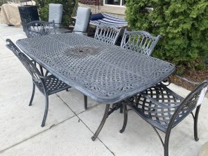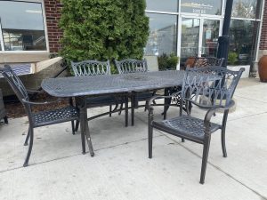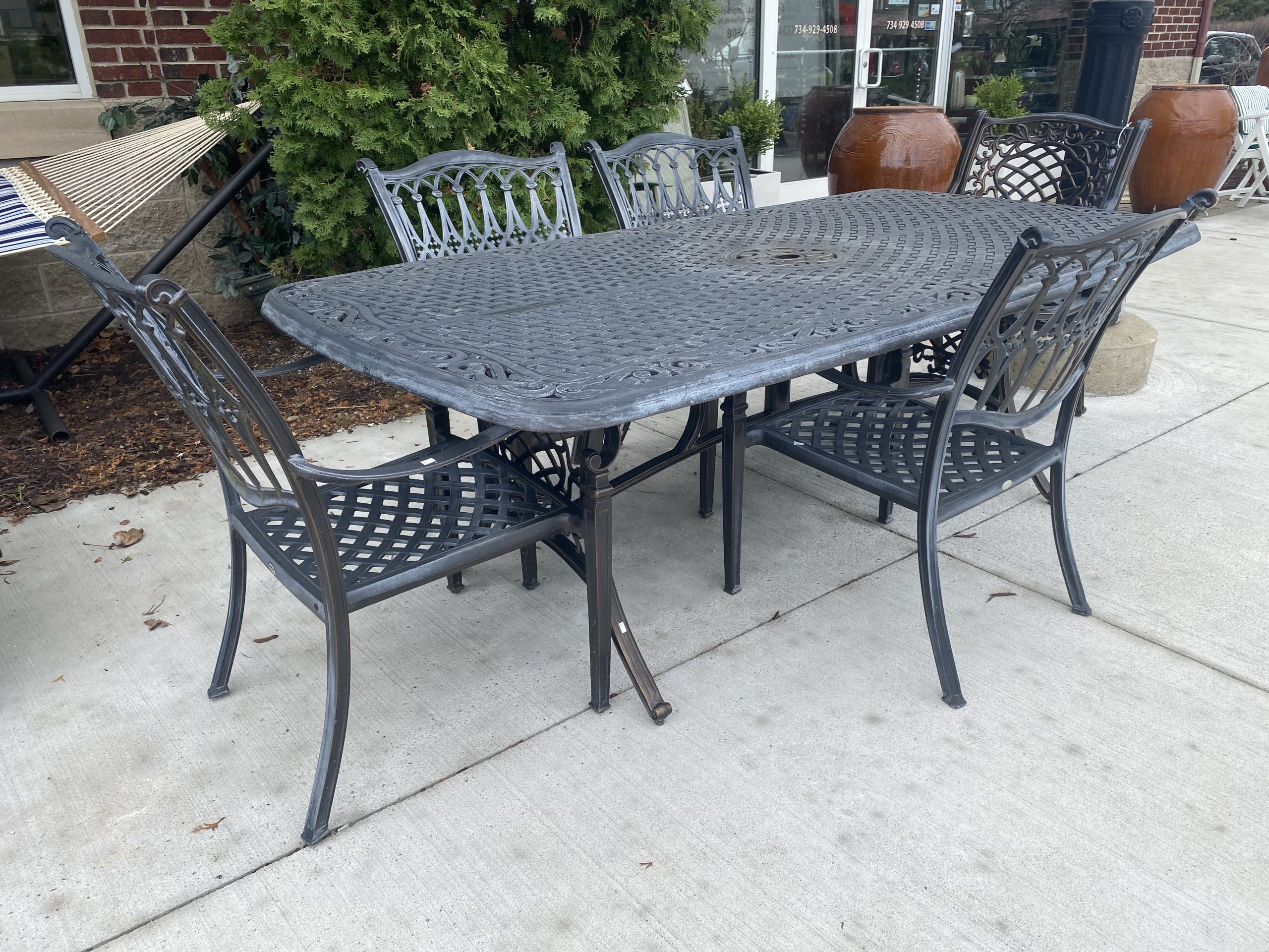 6 Piece Set Agio Mesh Aluminum Outdoor Dining Set Price $427.00 Size: 85in x 43in x 28.5in (LxWxH) Additional Pictures Product Location Location Ann Arbor Store Other related products: 3 ~ Custom Made Garden Trellis ~ Sold Separately!$249.99 Location: Ann Arbor Store 2-IKEA BLACK SKOALBODA CHAIRS Sold Separate Location: Jackson Store XXL Bronze Lion Motif Water Fountain/Planter$2,800.00 Location: Ann Arbor Store Set of 2 Project 62 Boda Caned Patio Chairs$140.00 Location: Ann Arbor Store La-z-Boy Metal Outdoor Loveseat *NO CUSHIONS*$100.00 Location: Ann Arbor Store << back to the catalog