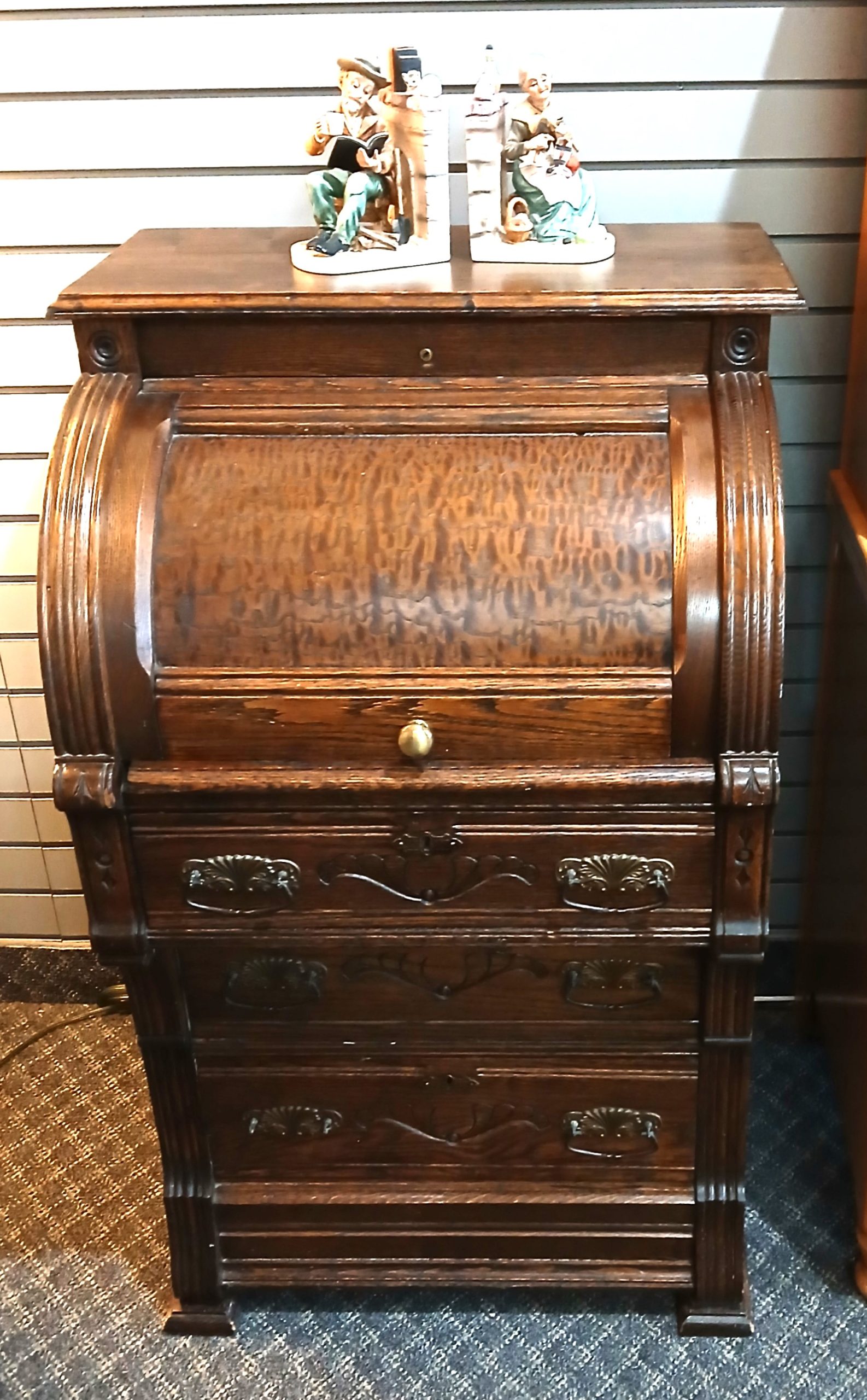 Homepage » Furniture » Antique Eastlake Burled Walnut Cylinder Secretary Desk