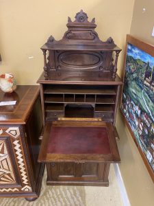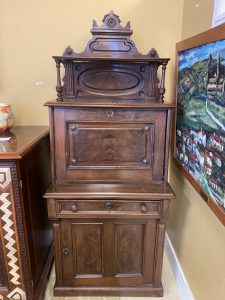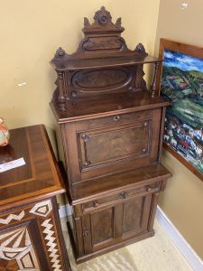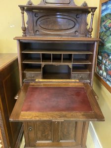 Antique Eastlake Ladies Fall Front Writing Desk Price $499.99 Size: 16in x 26in x 63in (LxWxH) Additional Pictures Product Location Location Ann Arbor Store Other related products: Very Cool Antique Tool Chest$199.99 Location: Ann Arbor Store Antique Oak Secretary Cabinet$750.00 Location: Jackson Store Antique Eastlake Burled Walnut Cylinder Secretary Desk $314.00 Location: Jackson Store 1900’s Early American Blanket Trunk$240.00 Location: Ann Arbor Store Antique Carved Mahogany Wheat Sheaf Wall Mirror $99.00 Location: Jackson Store << back to the catalog