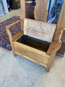 Antique Vintage Hall Tree with Mirror & Storage Price $630.00 Size: 16in x 33.5in x 79in (LxWxH) Additional Pictures Product Location Location Ann Arbor Store Other related products: Wrought Iron Mirrored Hall Stand$560.00 Location: Ann Arbor Store Carter (Chicago) Custom Contemporary Sofa$950.00 Location: Ann Arbor Store Round White Accent Table With Glass Top $75.00 Location: Jackson Store Cherry 4 Piece Lighted Display Wall Unit$300.00 Location: Ann Arbor Store 34″ Round Gilded Accent Table$300.00 Location: Ann Arbor Store << back to the catalog