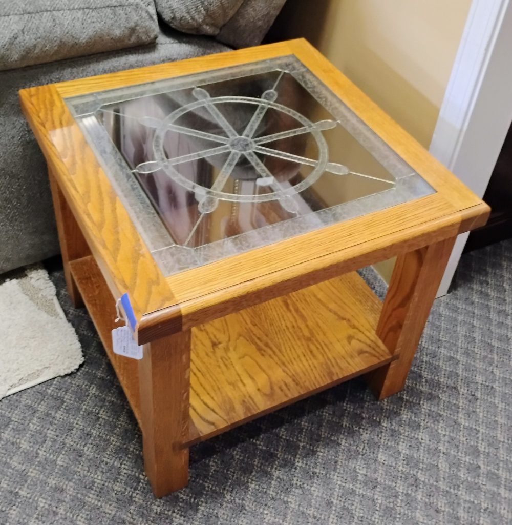 Custom Oak-Stained Glass Coffee Table And Accent Tables Sold Separate