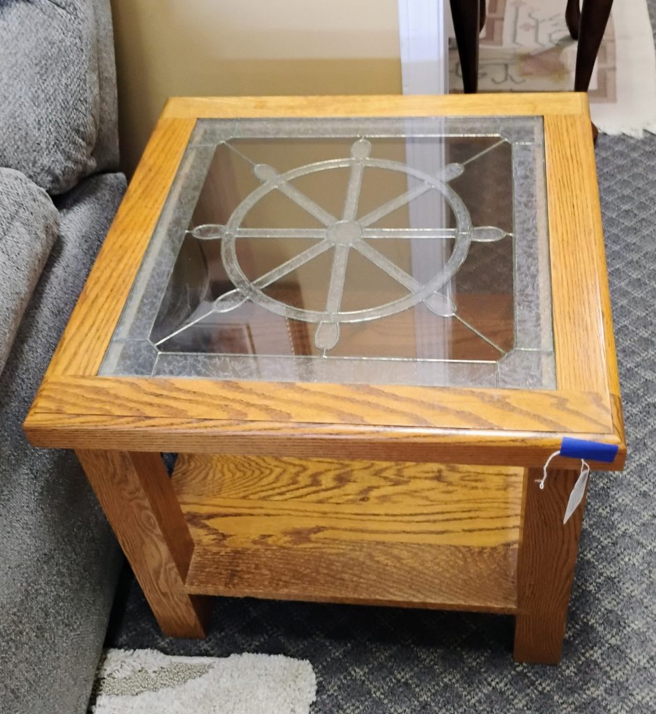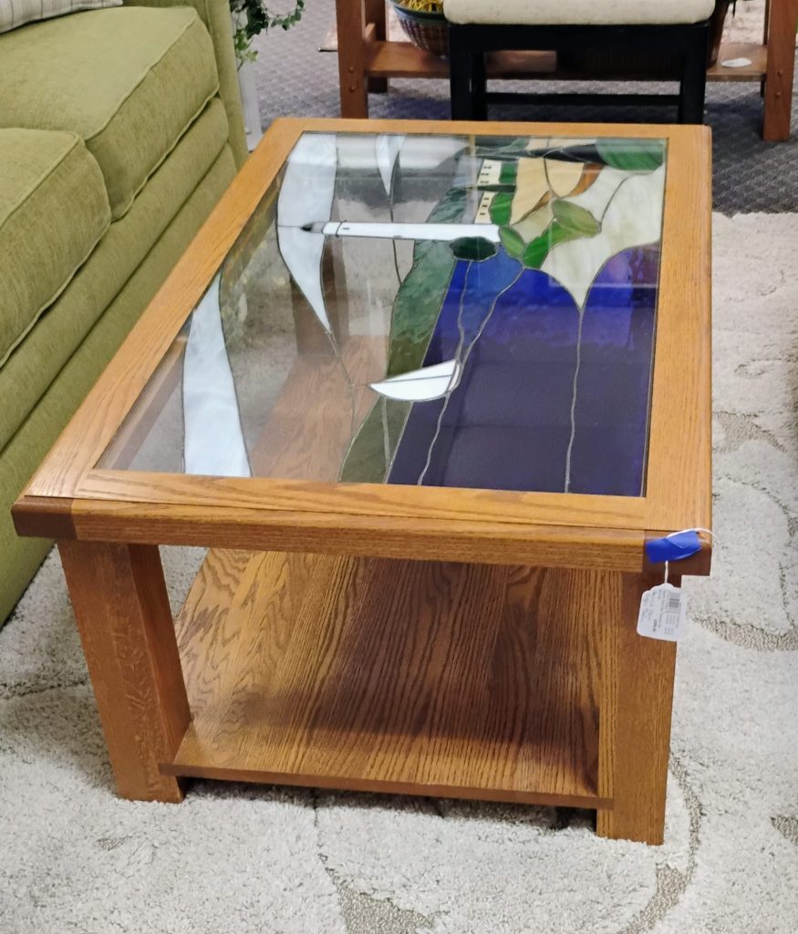 Custom Oak-Stained Glass Coffee Table And Accent Tables Sold Separate