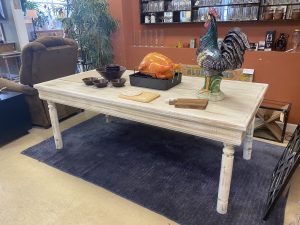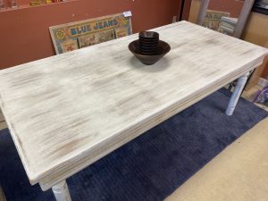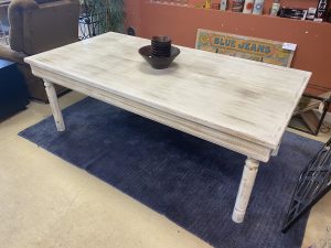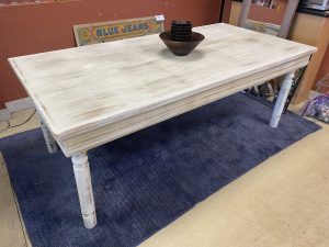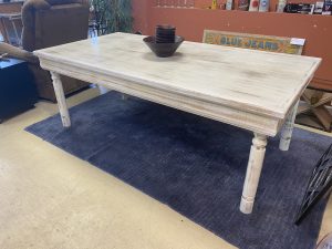 Custom Whitewashed Rustic Farm Dining Table Price $499.99 Size: 6'6"in x 39in x 29in (LxWxH) Additional Pictures Product Location Location Ann Arbor Store Other related products: Vintage St. Johns (Cadillac, MI) Solid Maple Dining Room Set And Hutch Sold Separate Location: Jackson Store Amisco Kai Counter Height Pub Table with 2 Stools$630.00 Location: Ann Arbor Store Babydreamdecor Furniture Hand Painted Children’s Table And Chairs $315.00 Location: Jackson Store Vintage Battistelli Industria Italian Antibes Dining Table with 2 Leaves$399.99 Location: Ann Arbor Store Set of 4 World Market Windsor Dining Chairs$320.00 Location: Ann Arbor Store << back to the catalog