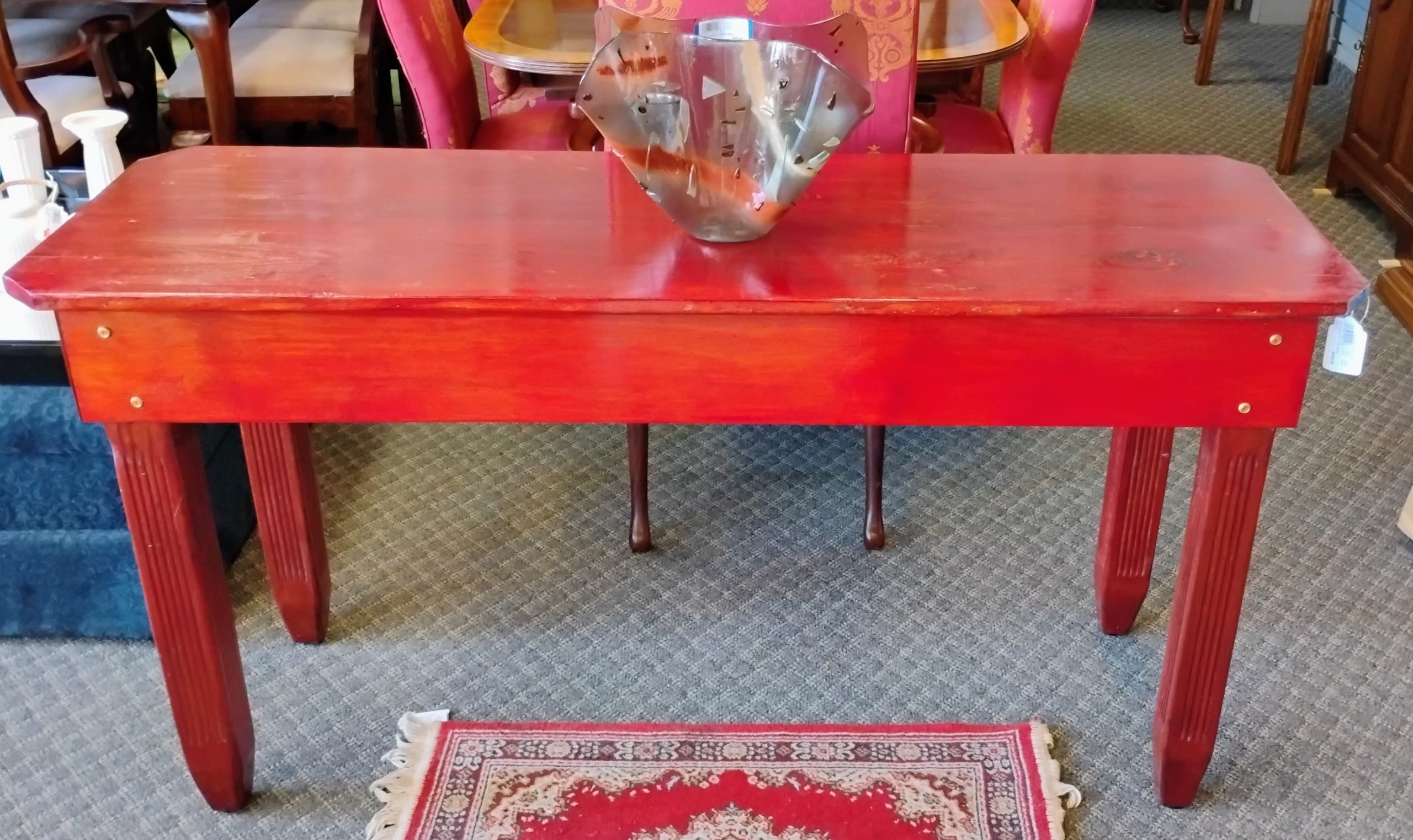 This table came from The Star Store -Family Owned , Located In Pittsburgh, Pennsylvania. The table was a working display table for merchandise. The owner shared stories about displays she created using remnant materials to attract customers who had little money to spare.
