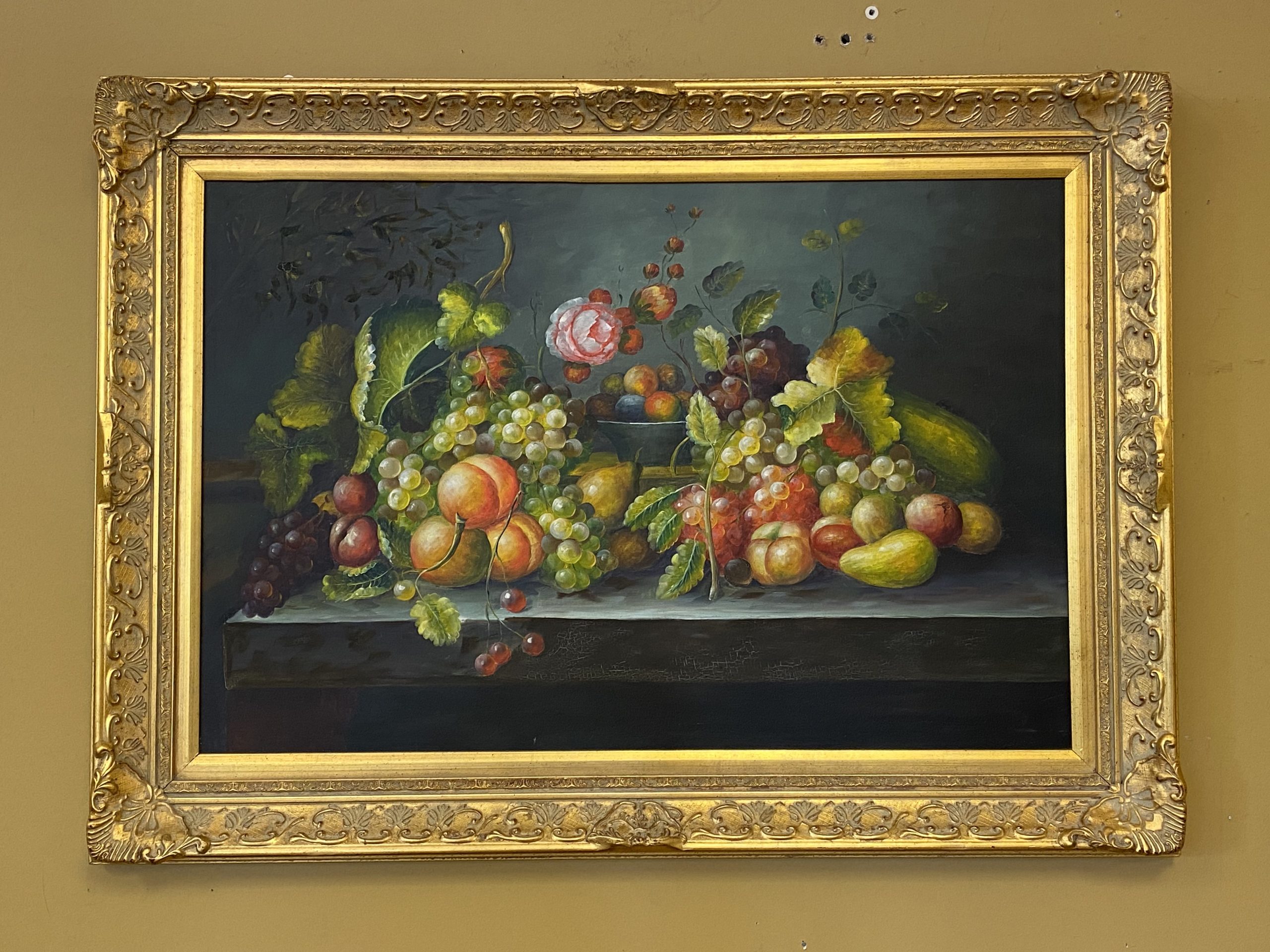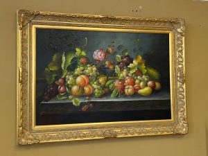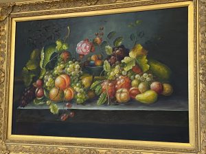 Fine Art Still Life of Flowers & Fruit Price $175.00 Size: 44.5in x 32.25in (WxH) Additional Pictures Product Location Location Ann Arbor Store Other related products: Spanish Courtyard Fine Art Print$175.00 Location: Ann Arbor Store Trillium Hill Signed Framed Art$75.00 Location: Jackson Store Vintage Art Litho Print Picasso Peirrot Red Harlequin$280.00 Location: Ann Arbor Store Vintage Framed Original Signed Art By Artist Hans Figura$175.00 Location: Jackson Store Vintage Brunet Framed Print Paris La Moulin $99.00 Location: Jackson Store << back to the catalog