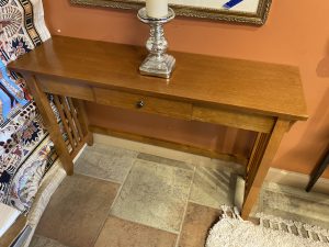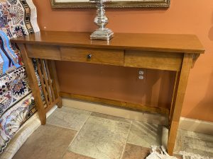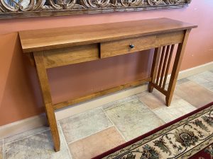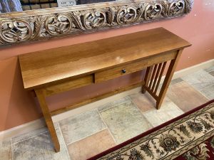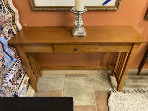 Mission Style Single Drawer Console Table Price $149.99 Size: 45.25in x 13in x 30in (LxWxH) Additional Pictures Product Location Location Ann Arbor Store Other related products: NEW PINMOCO Ergonomic Cross Legged Chair $67.00 Location: Jackson Store Braxton Culler Rattan/Wicker Sofa With Custom Cushions $765.00 Location: Jackson Store NEWER LazyBoy Electric Reclining Sofa$1,600.00 Location: Jackson Store Charleston Forge Omega Cocktail Table$960.00 Location: Ann Arbor Store Sunny Designs Carriage House Barn Door Console$455.00 Location: Ann Arbor Store << back to the catalog