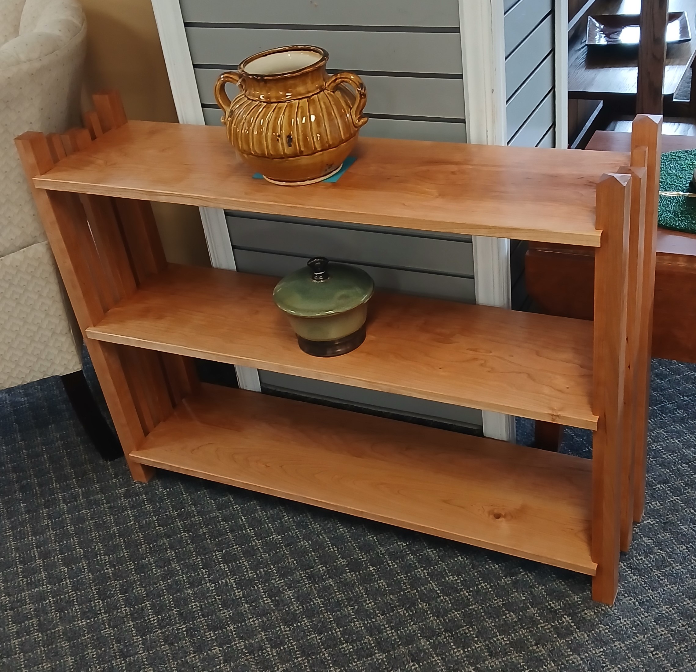 New Custom Cherry Bookshelf New Custom Cherry Bookshelf 42” L x 11” D x 29” H Price $385.00 Additional Pictures Product Location Location Jackson Store Other related products: NEW Professionally Custom Solid Oak Bookshelf $420.00 Location: Jackson Store NEW AMSXNOO 5 Tier Corner Bookshelf $87.50 Location: Jackson Store Mid Century Chrome Etagere$175.00 Location: Ann Arbor Store Restoration Hardware Industrial Reclaimed Wood Bookshelf$199.99 Location: Ann Arbor Store << back to the catalog