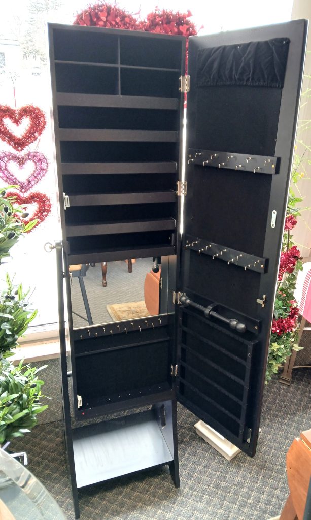 New~ Full Length Mirror-Jewelry Armoire New~ Full Length Mirror-Jewelry Armoire 14 1/2 ” L x 62 1/2” H Price $300.00 Additional Pictures Product Location Location Jackson Store Other related products: Vintage Italy Gilded Mirror $337.00 Location: Jackson Store 43″ x 28″ Glam Striped Mirror$85.00 Location: Ann Arbor Store 42″ x 30″ Black Forest Style Mirror$500.00 Location: Ann Arbor Store Distressed Finish Iron Beveled Mirror$149.00 Location: Jackson Store Ethan Allen Wall Mirror$50.00 Location: Jackson Store << back to the catalog