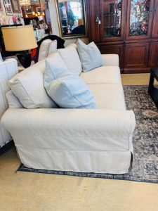 Pottery Barn Comfort Roll Arm Slipcovered Sofa Price $2,499.99 Size: 92in x 41in x 37in (LxWxH) Additional Pictures Product Location Location Ann Arbor Store Other related products: Newer Lazyboy Brushed Grey Upholstery Sofa $849.00 Location: Jackson Store Carter (Chicago) Custom Brushed Upholstered Sofa $855.00 Location: Jackson Store Custom Taylor King Furniture Loveseat$239.00 Location: Jackson Store 3 Pc. Newer Jonathon Louis (CALI) Sectional Sofa $1,440.00 Location: Jackson Store Harden Furniture Settee-Loveseat $125.00 Location: Jackson Store << back to the catalog
