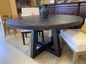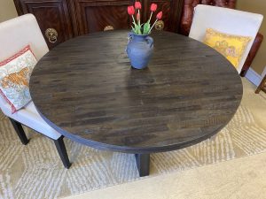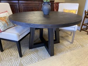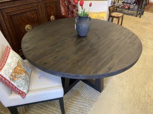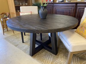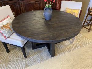 The Woodhills Trapezoid 54″ Round Distressed Wood Dining Table Price $799.99 Size: 54in x 54in x 31.5in (LxWxH) Additional Pictures Product Location Location Ann Arbor Store Other related products: Ethan Allen Swedish Collection Pedestal Dining Table with 6 Chairs and One 18″ Leaf$1,099.99 Location: Ann Arbor Store NEW ~ S/6 Jofran Simplicity Cross Back Dining Chairs$630.00 Location: Ann Arbor Store Beveled Glass Top-Wooden Trestle Dining Room Table-Chairs-Sold Separate Location: Jackson Store Rare 10 Pc. Vintage Lancaster County By Willett Solid Maple Drop Leaf Table And Chairs $700.00 Location: Jackson Store Stunning!! Harden Furniture Black Walnut China Cabinet$650.00 Location: Jackson Store << back to the catalog