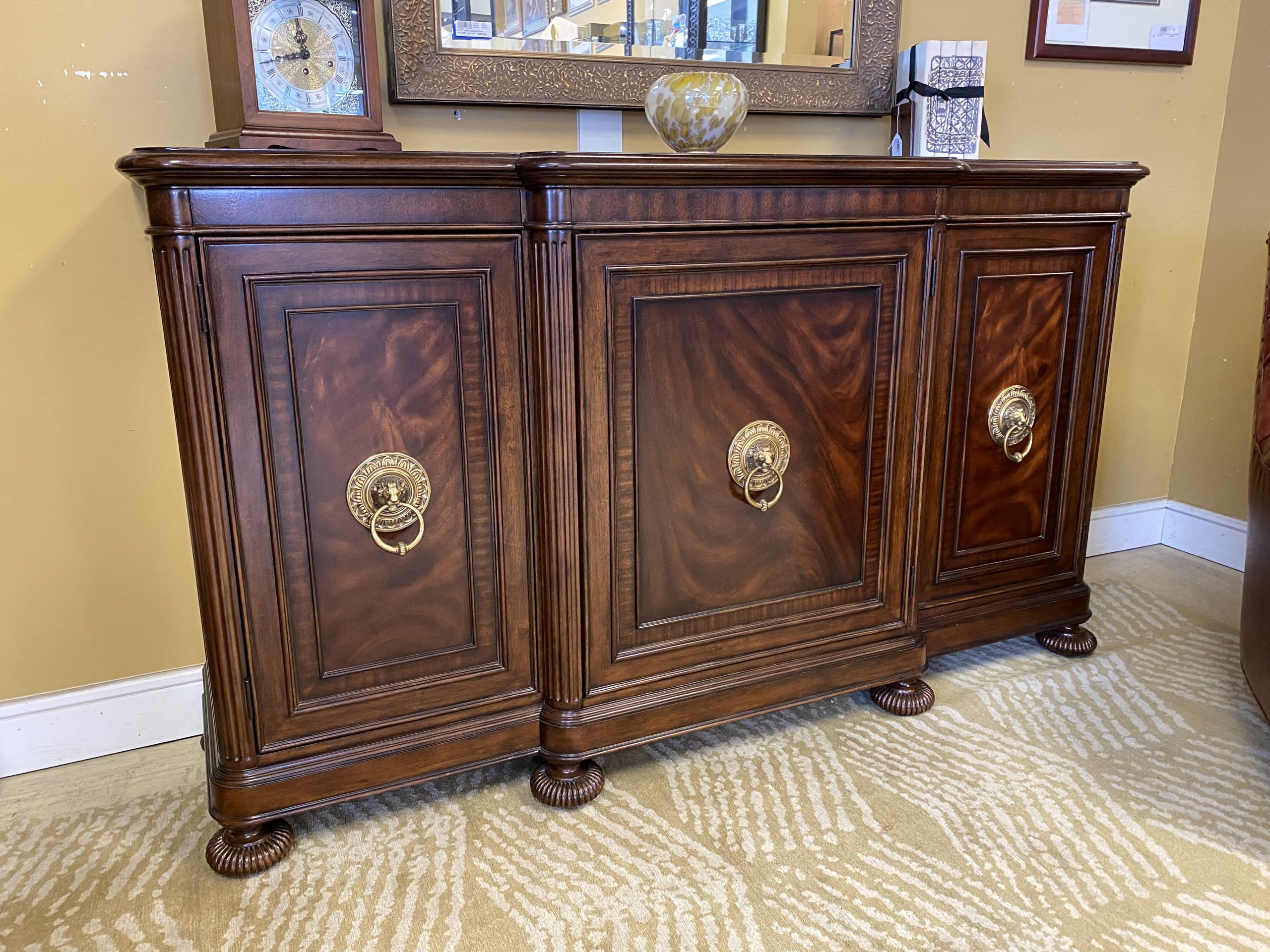 Thomasville Buffet with Brass Lion Head Hardware Price $1,199.99 Size: 73in x 21.5in x 43in (LxWxH) Additional Pictures Product Location Location Ann Arbor Store Other related products: NEW PINMOCO Ergonomic Cross Legged Chair $67.00 Location: Jackson Store Early American Pembroke Drop Leaf Table$374.99 Location: Ann Arbor Store Carter Round Chestnut/Deco Iron Coffee Table$287.00 Location: Jackson Store 2 ~ Sherrill Furniture Custom Birmingham Accent Chairs ~ Sold Separately!$960.00 Location: Ann Arbor Store 2-IKEA BLACK SKOALBODA CHAIRS Sold Separate Location: Jackson Store << back to the catalog