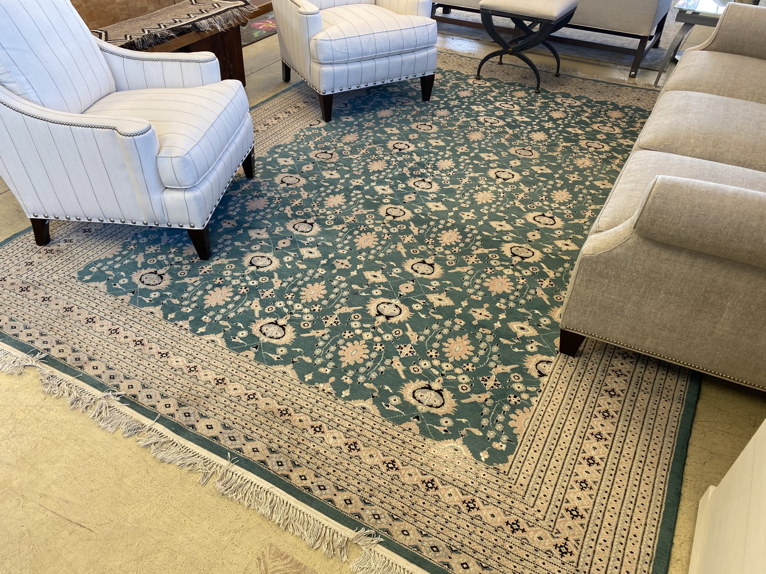 Vintage 14′ x 9′ Oushak Area Rug Price $1,800.00 Additional Pictures Product Location Location Ann Arbor Store Other related products: 5’7″ x 10′ Power Loomed Whitney “Verdigris” Spanish Wool Rug$200.00 Location: Ann Arbor Store 6′ x 5′ Moroccan Handmade Beni Mrirt Abstract Area Rug$100.00 Location: Ann Arbor Store Capel/Josephine/India Wool Rug $392.00 Location: Jackson Store Lauren Liess Rug $59.00 Location: Jackson Store 8’3″ x 5’3″ Indian Agra Area Rug$300.00 Location: Ann Arbor Store << back to the catalog