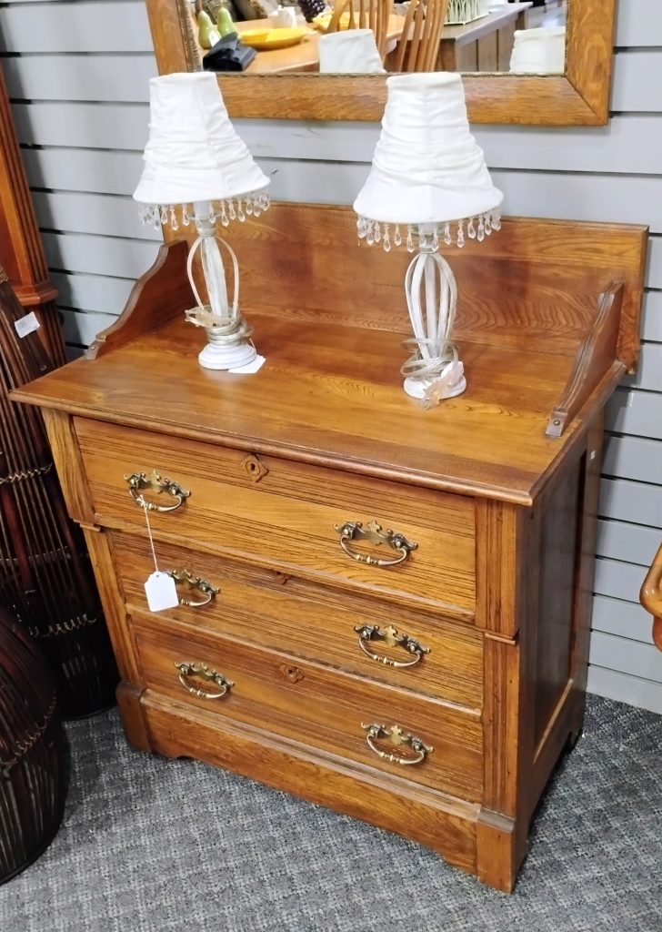 Vintage Solid Oak Wash Stand/Chest Vintage Solid Oak Wash Stand/Chest 3-Drawers 31 1/2” L x 17” D x 29 1/2” H Price $180.00 Additional Pictures Product Location Location Jackson Store Other related products: Trailway Furniture Amish Solid Cherry Pedestal Dining Table with 6 Chairs & 2 Leaves$2,199.99 Location: Ann Arbor Store Vintage 2 Pc. Lancaster County By Willett Maple Hutch $400.00 Location: Jackson Store Set of 2 American Signature Spindle Dining Chairs$160.00 Location: Ann Arbor Store 2 ~ American Signature Boucle Dining Chairs ~ Sold Separately!$160.00 Location: Ann Arbor Store Set of 4 World Market Windsor Dining Chairs$200.00 Location: Ann Arbor Store << back to the catalog