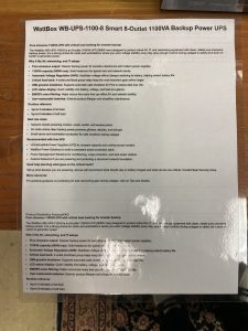 Wattbox WB-UPS-11008 Smart 8-Outlet 1100 VA Backup Power UPS Price $675.00 Additional Pictures Product Location Location Ann Arbor Store Other related products: Lexicon 312 3-CH Power Amplifier$450.00 Location: Ann Arbor Store James Loudspeaker M1000 Mono Subwoofer Amplifier$360.00 Location: Ann Arbor Store Bowers & Wilkins AS1 Active Subwoofer$112.00 Location: Ann Arbor Store 2 ~ Integra A/V Receiver Model DTR-30.4 Channel Network A/V Stereo Receiver ~ Sold Separately!$112.00 Location: Ann Arbor Store Sony UBP-X1000ES Smart WiFi Ultra HD Blu-Ray DVD Player$247.00 Location: Ann Arbor Store << back to the catalog