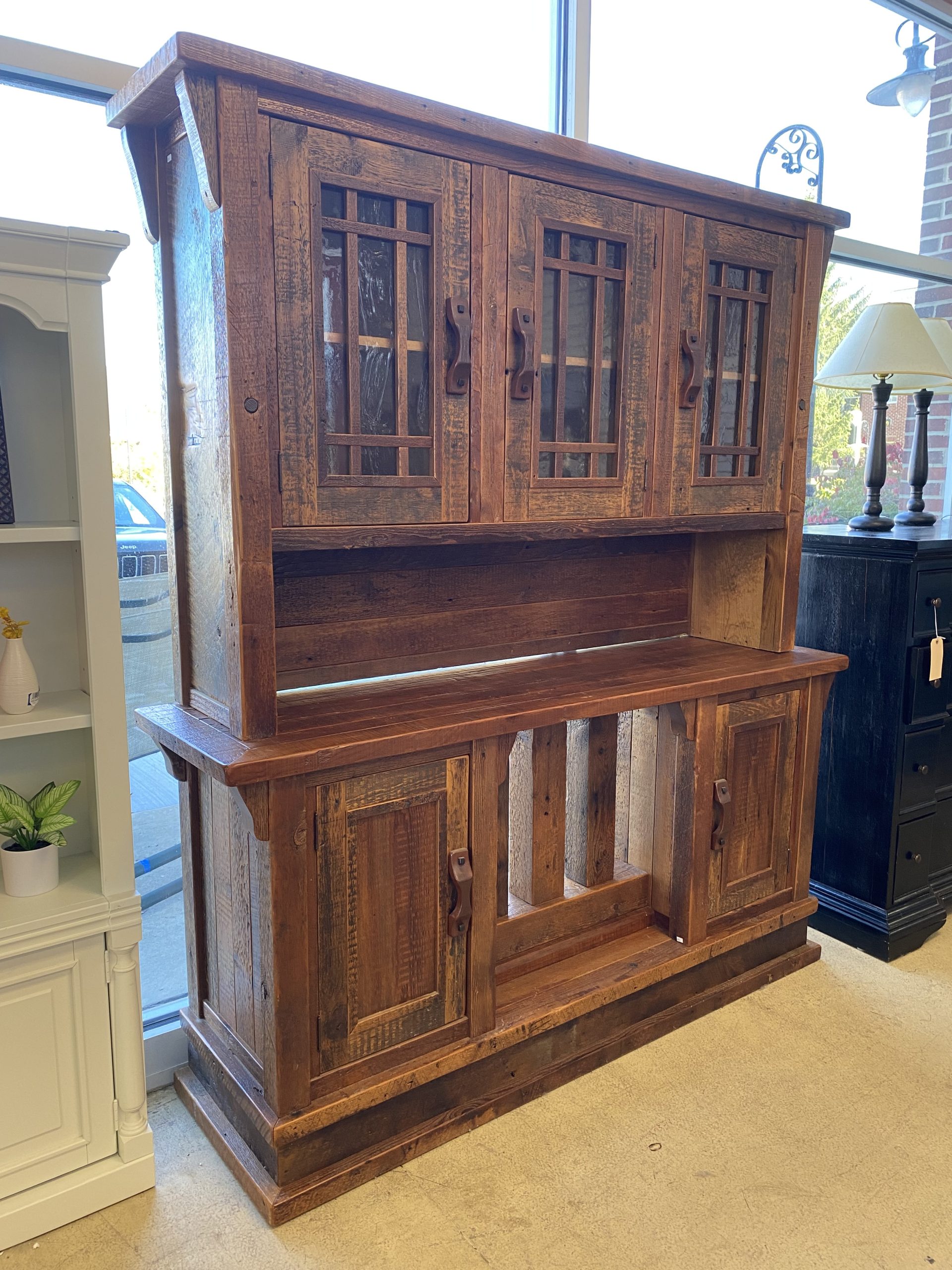 Woodland Creek Rustic Reclaimed Barnwood Sideboard/Hutch Price $2,200.00 Size: 72in x 20in x 82in (LxWxH) Additional Pictures Product Location Location Ann Arbor Store Other related products: 4 Piece Black Entertainment Wall Unit$499.99 Location: Ann Arbor Store Unique Chinese Stool with Stone Top$135.00 Location: Ann Arbor Store Cherry 4 Piece Lighted Display Wall Unit$300.00 Location: Ann Arbor Store Black Wooden Tray Table$60.00 Location: Jackson Store << back to the catalog