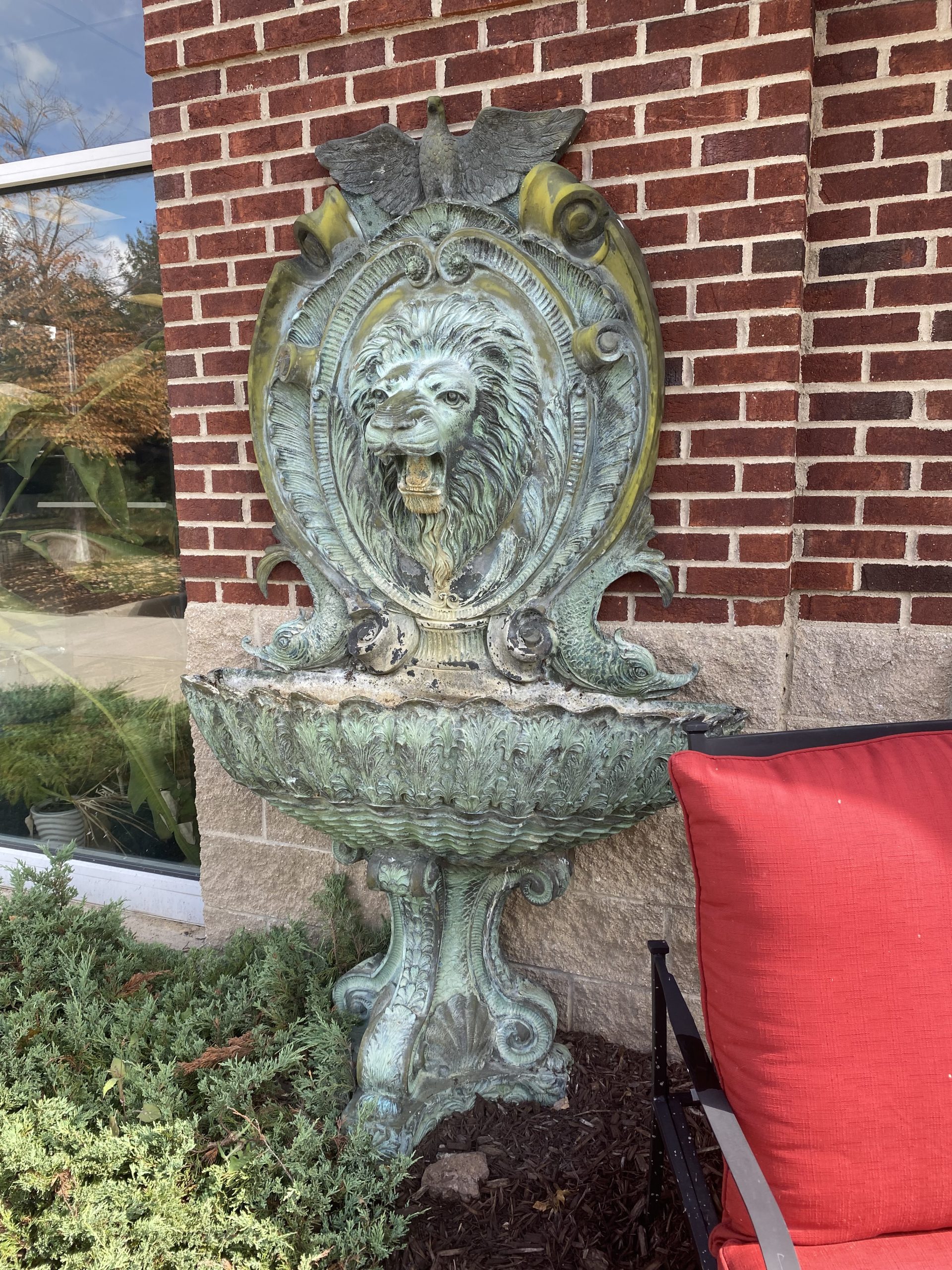 XXL Bronze Lion Motif Water Fountain/Planter Price $3,999.99 Size: 49.5in x 24in x 80in (LxWxH) Additional Pictures Product Location Location Ann Arbor Store Other related products: 2-IKEA BLACK SKOALBODA CHAIRS Sold Separate Location: Jackson Store Vintage Russell Woodard Daisy Bouquet Wrought Iron Outdoor Dining Table with 4 Vintage French Bistro Chairs$849.99 Location: Ann Arbor Store 3 ~ Garden Treasures Yorkford End Tables ~ Sold Separately!$52.00 Location: Ann Arbor Store 2 ~ Garden Treasures Yorkford Chaise Lounges ~ Sold Separately!$210.00 Location: Ann Arbor Store 4 Piece Garden Treasures Yorkford High Top Table Set$420.00 Location: Ann Arbor Store << back to the catalog